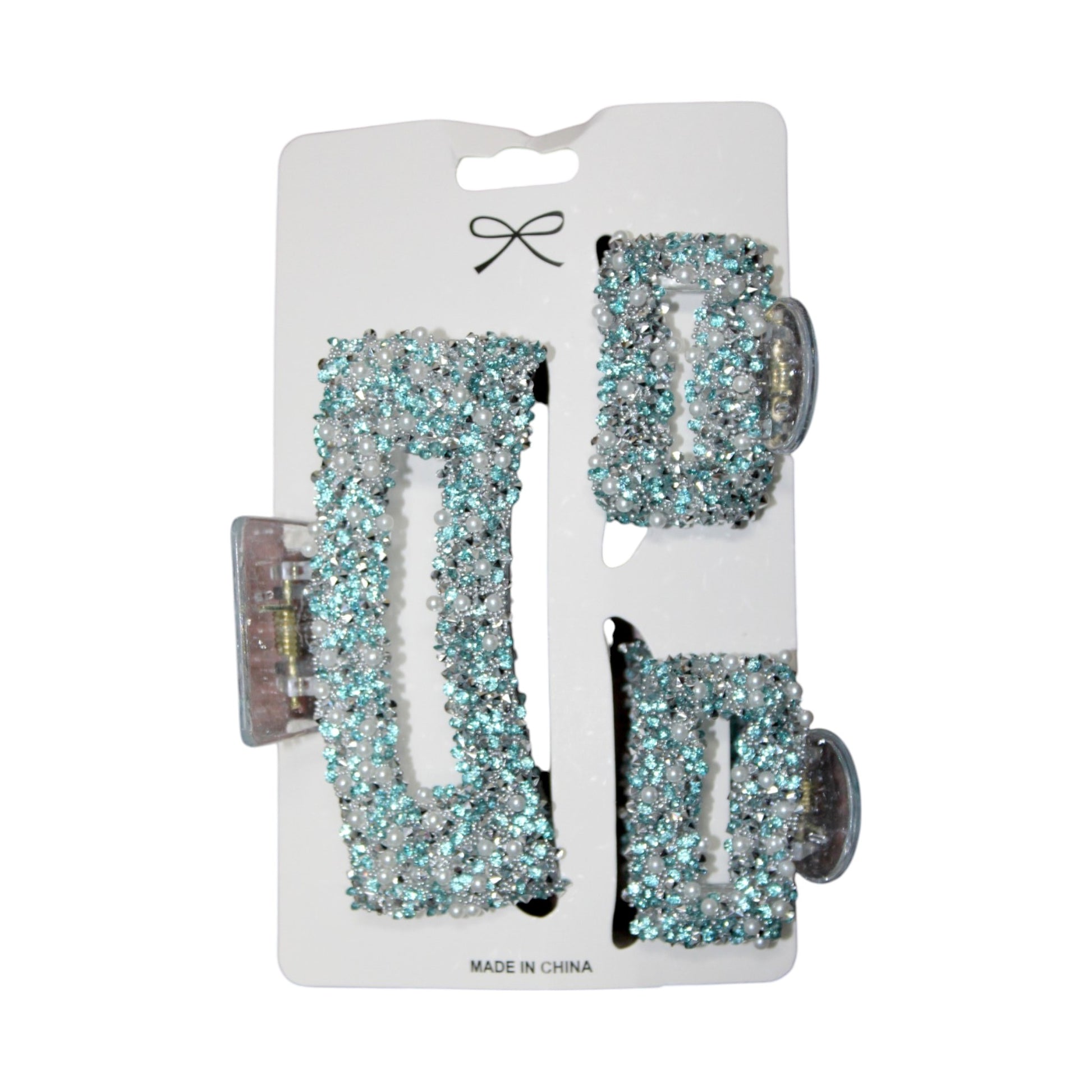 Sparkly Square Hair Clip Set - Light Blue (1 Dzn)
