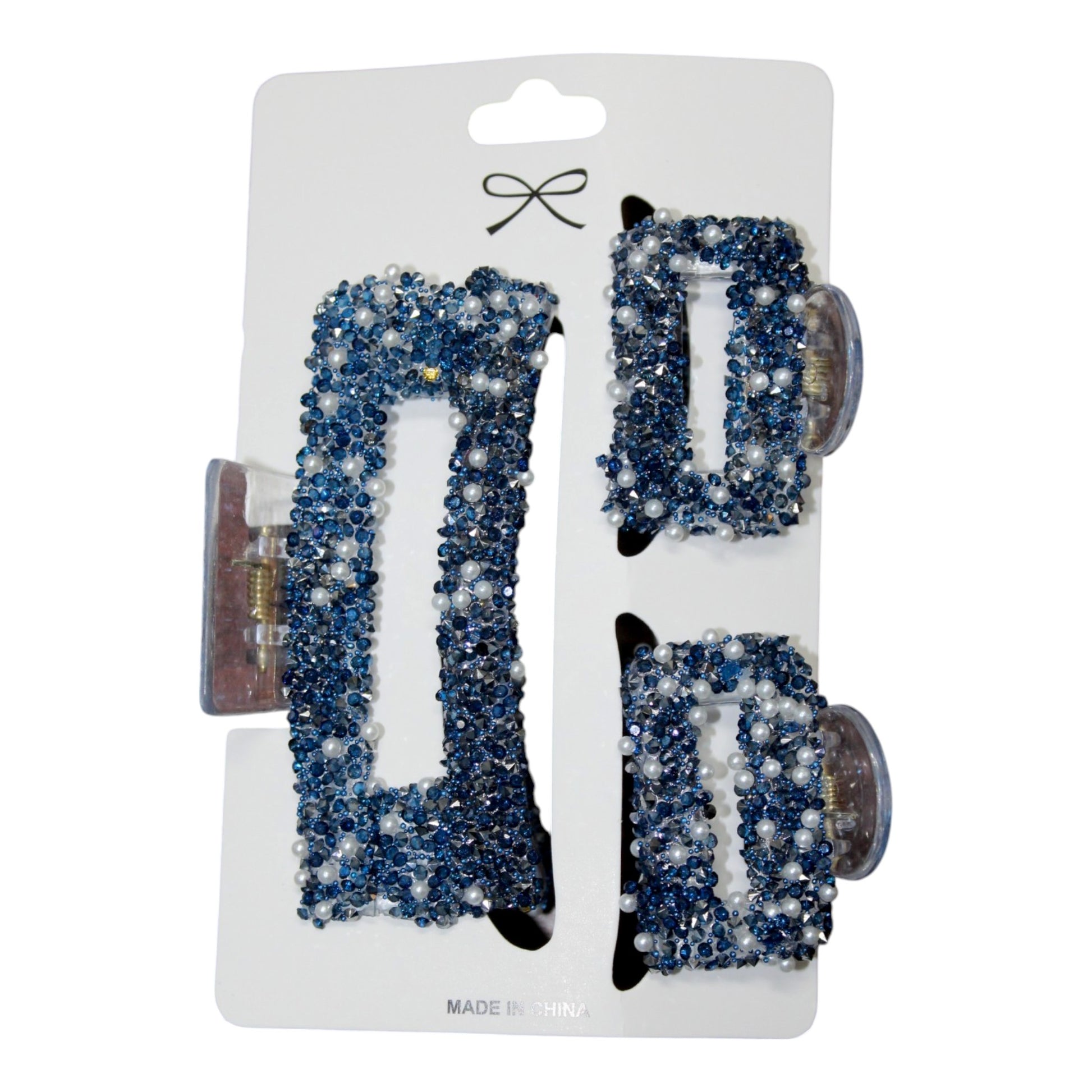 Sparkly Square Hair Clip Set - Navy (1 Dzn)