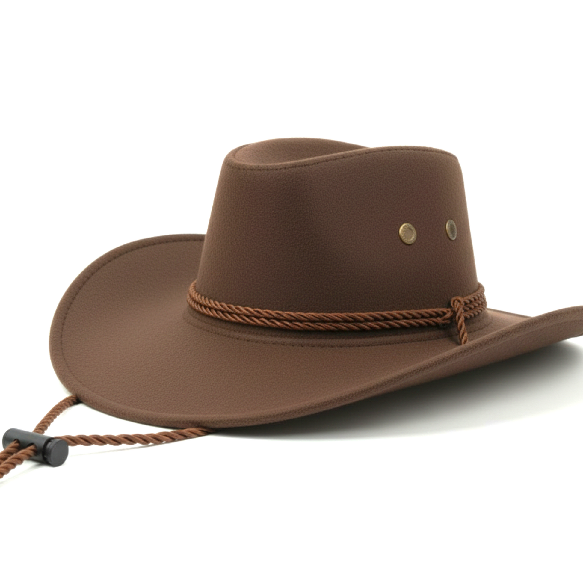 Decorated with a simple, braided rope hat band and metal studs/grommets on the crown@4.50 per pieces